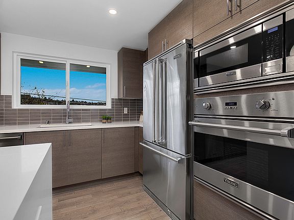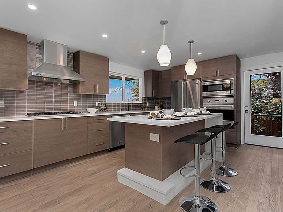 Perched above the street w/ gorgeous views of the Olympic mtns, Puget Sound, Ballard Locks & Magnolia, this large, custom remodeled home has everything one would desire. High end cabinets, solid HW floors, porcelain tile, Viking ss appliances & luxurious carpets. The master ste. offers vaulted ceilings & french doors, a 5-pc spa like bath w/ walk-in shower & soaking tub. Jack & Jill beds, a cozy media rm w/ built in bar & gas FP. The rooftop deck & generous patio complete this gorgeous home.