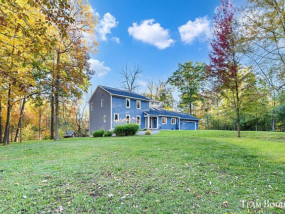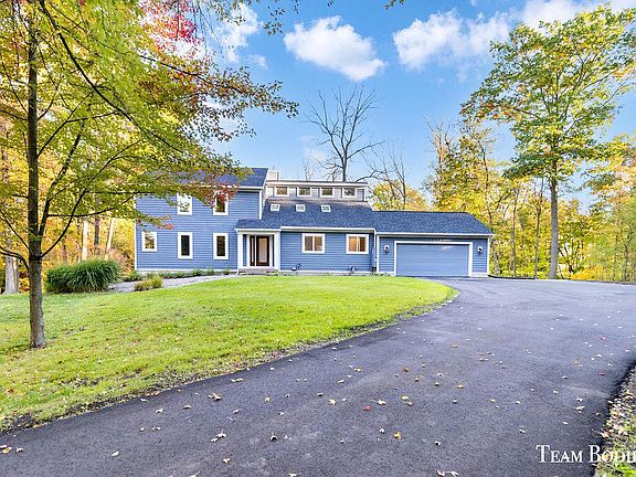 Forest Hills Schools, Grand Rapids Township Remodeled 2 story 1+ acre, 3832 square feet of living space, 5 bedroom 3+ bath, Main Floor Primary Bedroom and Bath, 20 Ft Ceilings, New Roof, HVAC, Baths, Flooring, Paint, Windows, Kitchen, Driveway. Perfect Move in Condition. Large FDR/Great Room with Gas FP, Abundant Rec Room, Spacious Utility Room. Top of the line appliances and solid surface countertops. Private Yard with multiple decks and fire pit area make this a nice place to live.