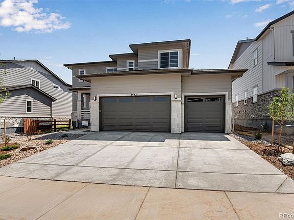 Welcome to this inviting two-story home, located on a quiet cul-de-sac lot. The main floor features a bright walk-in pantry, a gourmet kitchen overlooking the living room, and an oversized center-meet door leading to a covered patio and large backyard. A spacious study is tucked away on the main floor, providing a perfect spot for a home office. Upstairs, the primary suite offers a spa-like bathroom with a shower and free-standing tub. You'll also find a loft and two additional bedrooms, including a great ensuite. The finished basement adds extra entertaining space and a fourth bedroom. The floorplan features a 4-car garage, with a 3-car garage plus a tandem space for added convenience. This modern home blends comfortable living with functional spaces, making it a great place to call home. This beautiful new home is located in the amenity-rich community of The Aurora Highlands and is bustling with activity. The event lawn is now open, along with public art displays. Plans are underway for a Beach Club with community pool, miles of trails, numerous neighborhood parks - including playgrounds and athletic fields - and the expansive Hogan Park at Highlands Creek. The Aurora Highlands also hosts numerous community events throughout the year for its residents such as an Independence Day Festival and a summer Artisan market.