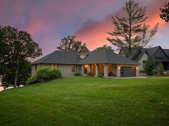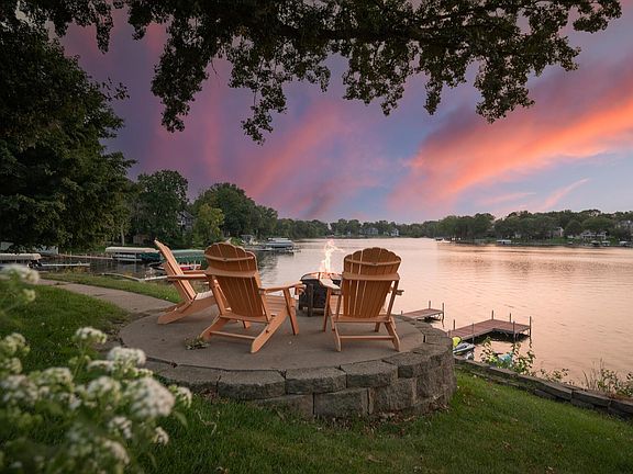 This exquisite walk-out rambler sits on the peaceful shores of Upper Prior Lake, offering a perfect blend of modern luxury and lakeside charm. Enjoy panoramic water views, direct lake access, and a layout designed for both everyday living and entertaining. The heart of the home is a remodeled kitchen featuring a new Bosch dishwasher, large center island with soft close cabinetry, quartz countertops, dual wall ovens, stainless steel appliances, and a walk-in pantry. The open-concept design flows into a spacious dining area with sliding glass doors leading to a maintenance-free deck—ideal for enjoying sunsets over the water. The living room boasts 13-foot vaulted ceilings, a cozy wood-burning fireplace, and expansive lake-facing windows. The main-level primary suite includes stunning lake views, a spa-like ensuite with walk-in tiled shower, dual vanities, and ample closet space. Two additional bedrooms and a full bath complete the main floor. The walk-out lower level offers a large family room, wet bar, second fireplace, recreation area with LVP flooring, two more bedrooms, a ¾ bath, a hobby room or office, and a huge 21' x 20' storage room beneath the Spancrete garage floor. Outside, enjoy a beautifully maintained yard with lakeside patio, riprapped shoreline, and new irrigation. Major updates include new shingles & gutters, patio doors, refinished floors, interior paint, new carpet, LVP flooring, furnace (2021), water softener, garage door and epoxy flooring.