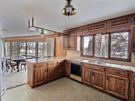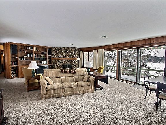 Enjoy breathtaking sunset views of Lower Nashotah Lake from your deck nestled in the treetops. This ranch home has an open concept floor plan with the kitchen, great room & dining on the main level featuring a wall of windows and natural fireplace. Kitchen has a dumb waiter to LL and coffee bar area with sink. Finished lower level has full size windows, wood burning stove, and door to the lower patio. Approximately 1100 ft. of pristine lake frontage!