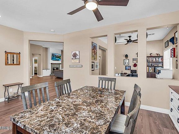 Situated on a spacious lot, this home features a lush grass area and a sparkling swimming pool, ideal for enjoying the Arizona summer months. Enjoy the extended covered patio with a view of San Tan Mountain. The backyard oasis includes lighting for perfect outdoor relaxation and entertaining, providing plenty of space for family gatherings and fun in the sun. Located just moments away from Gilbert Regional Park and a variety of dining options, this home combines luxury and convenience. Don't miss the opportunity to make this exquisite property yours!