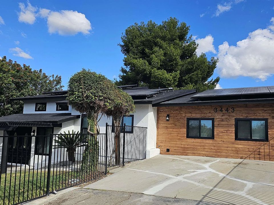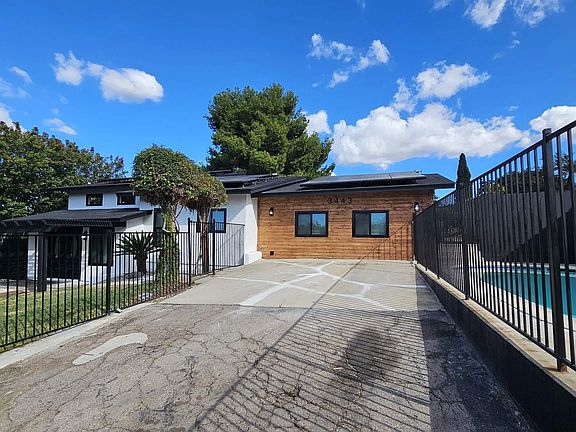 Complete Remodel! Beautiful 4 bedroom, 3 bath with swimming pool! Grand entrance features cathedral beamed ceilings and wonderful natural light. Large family kitchen with lovely peninsula, pendant lighting, ample cabinets, and lovely quartz countertops. Large dining room, separate living room, family room with fireplace and more. Primary bedroom with en-suite and walk-in closet sits up above all. 3 additional large bedrooms and a second full bath make this ample 2200 sqft home perfect for all. Fully fenced and gated lot, large front yard with decorative fountain, large tiled patio with pergola, gated parking, solar panels, and mature fruit trees. This home has it all. Additional photos coming soon!