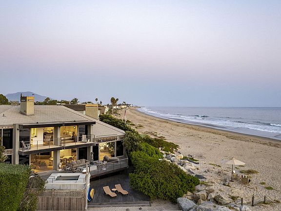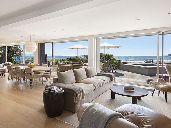 Welcome to the ultimate oceanfront estate! Stunning contemporary architecture & finishes highlight the ever-evolving grace of the Pacific & offer an extraordinarily luxe and laid back home, epitomizing the California Dream. Expertly poised, the home's position captures an overly expansive view of the coast that spans well beyond its apx 77' of beach front. An intelligent design ensures that dramatic ocean views are seen from nearly every room of the residence, all of which open to outdoor spaces. Whether on the expansive seaside deck, the private rooftop patio, or by the fireplace of a central enclosed courtyard, the ocean breeze floats throughout the home with ease. A beautiful guest house & a lit tennis court round out this magical seaside compound. FURNITURE IS AVAILABLE SEPARATELY.