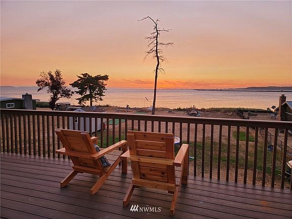 If you're seeking the Pacific Northwest waterfront life, this is it! Experience eagles and herons fishing in the morning, or breathtaking sunsets over the Sound & Islands. This home was built to capture the views w/almost every room in the house featuring a water view. The home was updated in 2015 and has many recent upgrades including A/C. The high vaulted ceilings & large windows bring the outdoors in. The house features 3 bdrms w/2 bthrms, lots of storage space, 2 living rm areas, a formal dining rm, kitchen and owners suite w/ spectacular panoramic views! The new west facing deck is expansive and built to last w/low maintenance synthetic decking. Launch your kayaks, comb the beach or paddle board off your own private shore.
