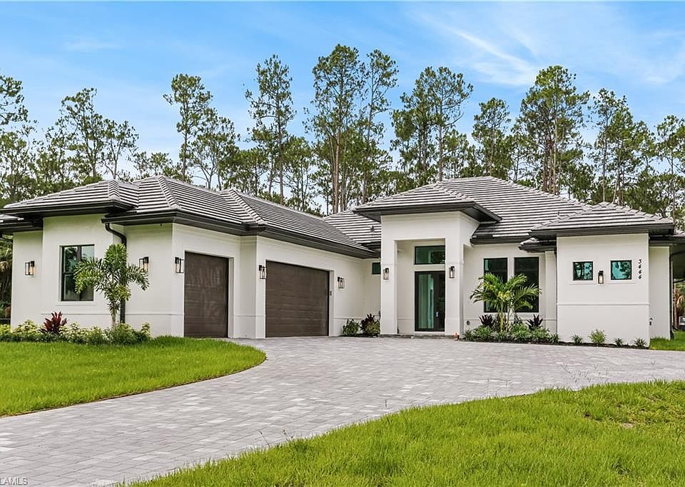 Brand new spacious modern home in the prestigious Weber Woods area of Golden Gate Estates. 4 bed / 3.5 baths, move-in ready with everything preinstalled! Modern kitchen with a huge island, stainless appliances and exhaust hood venting outside, lots of storage (walk in pantry, linen closets), high ceilings, crown molding, porcelain tile, shower with 3 heads and frameless glass doors, modern blinds throughout, LED lights with designer pieces, remotely controlled fans, stand alone bath tub, impact everything, Bull outdoor kitchen (with built in grill, exhaust hood, twin gas burner, ice box, sink), outdoor shower, heated pool with spa, picture screens, 2 AC units, laundry with cabinets, closet, utility sink and front loading units, full house Reverse Osmosis water system, thermal windows, beautiful paver driveway, modern flat tile roof, fence, automatic gates 3 car garage with epoxy floors, multi stage electronically controlled irrigation system and so much more! All this located right off Collier Blvd, next to Max A Hasse park in a great school district! 2.5 acres, privacy, yet central location, lots of space for a guest house, your toys or equipment with no HOA or restrictions!