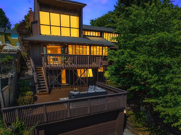 RARE! Located off the St for panoramic light, canal, Mt Range, City views! Extensively Remodeled NW Contemp w/legal ADU/2 Br Apt on a LG corner lot w/5+ parking! An easy walk to not only SPU, Fremont waterfront shops and all the gourmet restrnts, shops, and bakeries this Coveted quiet, in-city neighborhood is noted for! Walk to the lake, Amazon, and Gates Foundation w/near immediate freewy access w/out sacrificing pvcy! A frml entry opens to gleaming oak flrs under soaking 25' ceilings that carry thru the great rm w/2 sets of French doors & massive gourmet granite/SS kit w/office & 1 of 4 view decks! Entire top fl mstr ste w/2nd FP in the media rm that overlooks the main fl. Successful ADU or AirBnB! Newer roof, wiring, plumb, sewer liner!
