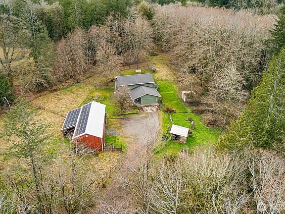 Situated on a tranquil, private & fenced 6.24 acres, this 2,198 square foot home features 5 bedrooms and 2 bathrooms, providing a peaceful retreat! This residence has a remodeled kitchen, open dining room and a cozy fireplace in the living room, enhancing its charm. The primary bedroom is conveniently located on the main floor for easy access. With plenty of room for outdoor activities and gardening, the property also boasts a large barn with an open loft, a greenhouse, and a storage shed. This home offers an ideal combination of country living, peace and convenience, all while being just minutes from town and the foot ferry!