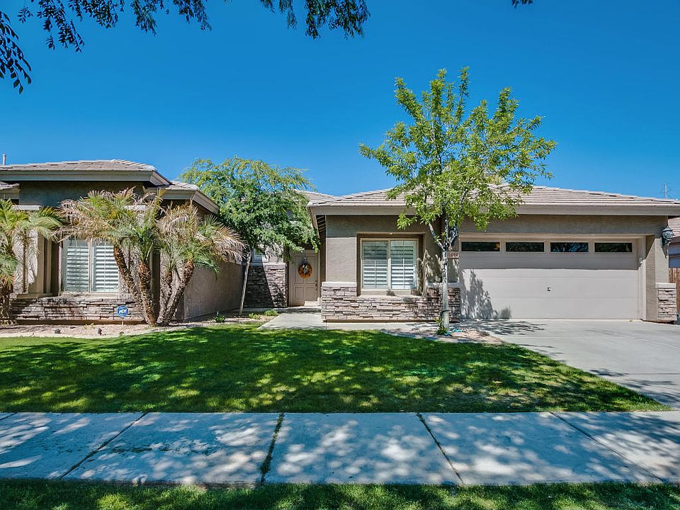 Feels like a custom dream home in desirable Higley Groves...Gorgeous inside! Gourmet eat in Kitchen with new granite counters; stainless steel deep sinks; RO Pantry, BK bar. Spacious Great Room with built-ins for TV. UPGRADES GALORE!!! Australian Birch Wood Floors; brand new Soft Touch carpet installed 6 months ago; 8'''' Baseboards; Shutters. 2 Bedroom is like another master. Separate tub and shower and double sinks in master. 10X20 Bonus Room. New water heater installed last year. Must see!