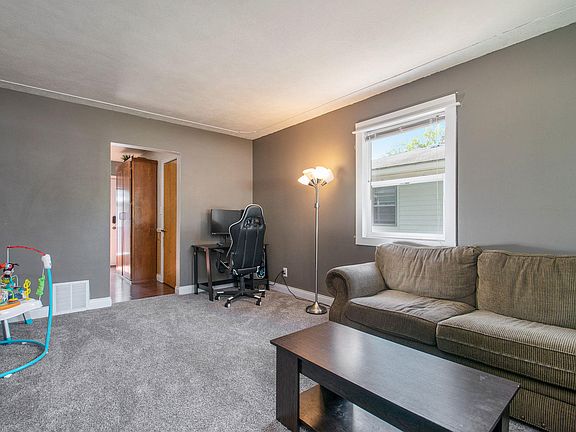 Welcome home to this move-in ready 3 bedroom, 1 bathroom ranch on a quiet residential cul-de-sac in the heart of Wyoming. This home features stainless steel appliances, brand new living room carpet, a private, fully fenced in yard, 2+ stall garage, and a full unfinished basement ready for your personal touch. Basement also has plumbing roughed in and ready for a second bathroom to be added! Washer and dryer and stainless steel microwave are also included in the sale of this adorable home.