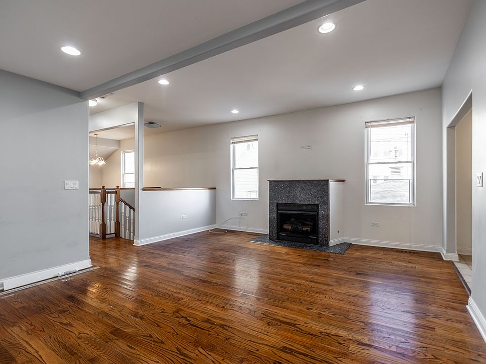 Welcome to your spacious duplex in the heart of Logan Square! The upper level features a massive living and dining room with a sunroom and a working fireplace, plus access to a private deck and shared yard space. A convenient half bath is also located on this level. Kitchen has garage disposal and newer appliances. On the lower level, you'll find all three bedrooms (all carpeted), including a primary suite with a walk-in closet. There's also a large foyer area that works perfectly as a home office or flex space. And of course, laundry in unit! Just steps from Milwaukee Avenue and the Blue Line, this home offers both comfort and convenience. Utilities are separate. Rent includes water and trash services One month security deposit. $350 pet fee per pet, one-time and non-refundable. No more than 2 pets. Available October 1st. One garage spot is for rent and $150/mo
