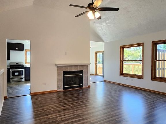 Fantastic open floor plan with , high cathedral ceilings boasts the size of this home! Its completely remodeled with new laminate vinyl flooring throughout and freshly painted for your decorating ideas! Nestled on a end cul-de-sac lot!,New Kitchen Cabinets ,Gas range ,Microwave .  and  to the kitchen and dining room.   Living room with lots of natural light . Bedrooms are in their own wing with a primary bedroom suite features walk in closet, whirlpool tub and stand up shower. Two additional bedrooms share newly remodeled  bathroom.  Basement with office space is waiting for your finishing touches and man-cave ideas! New sump pump and new ejector pump, new furnace and water heater. Spacious deck that overlooks  beautiful open green space. Great location! Near shopping, schools & highway. Great value!
