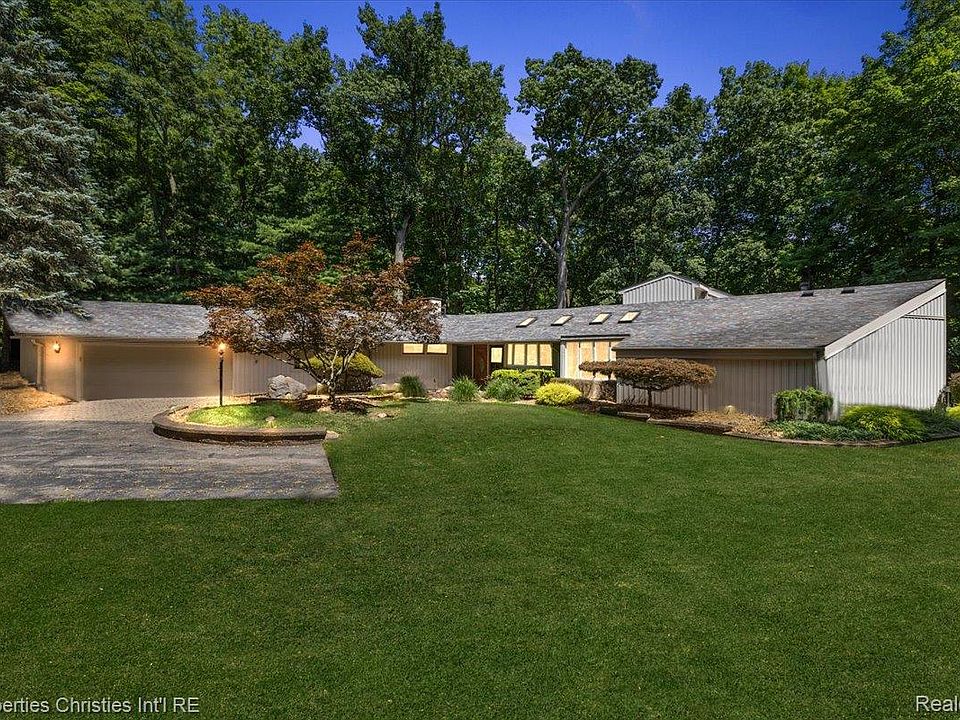 Welcome to 34448 Quaker Valley Drive, a striking 4-bedroom residence that seamlessly blends mid-century modern character with contemporary updates in the coveted Quaker Valley Farms subdivision. With 3,565 sq. ft. of living space on a picturesque .71-acre lot overlooking a ravine, this home offers an exceptional combination of style, comfort, & natural beauty. A dramatic open foyer greets you with gleaming terrazzo floors & impressive sightlines. The open-concept design showcases a bright, airy dining area flanked by two spacious living rooms, both featuring ravine views, fireplaces, & a seamless connection to the outdoors. Expansive windows, vaulted ceilings, & skylights flood the home with warmth and natural light. The updated kitchen boasts stainless steel appliances, sleek finishes, custom built-ins, and a generous pantry. The primary suite offers a private doorwall to the outdoors, an updated marble bathroom, abundant built-in storage, & an oversized walk-in closet. Two additional bedrooms on the main level & a bonus room upstairs provide plenty of flexibility for work, play, or guests. Enjoy the 2053 sq ft expansive deck that runs the entire width of the home & is the perfect setting for quiet moments of reflection or lively gatherings, with trees as your backdrop and the soothing sounds of nature as your soundtrack. Additional highlights include an attached two-car garage conveniently located off the laundry room, complete with closets & storage. With its curb appeal, rolling-hills setting, & serene surroundings, this home is both architecturally distinctive & wonderfully livable. Enjoy the 8 different hiking trails, 4 parks, splash pad, sledding hill all within a mile radius! Ideally located just minutes from shopping, dining, & top schools, it’s a rare opportunity to own a home that captures the very best of modern living in Farmington Hills. House is currently on well (yay, no water bill) and septic but a hook-up for sewer has already been installed.