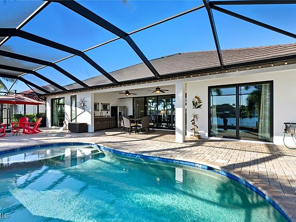 Located on the 400-foot-wide Ceitus Lake—with direct access to Pine Island Sound and beyond—this home includes a captains walk, wrap-around composite dock, a 10,000 lb. boat lift, and a boat canopy. Additional highlights include wood-look tile flooring throughout (with carpet in the guest bedrooms), impact windows and doors, a new metal roof (2023), and an air-conditioned storage area off the garage—ideal for seasonal items, coffered ceiling in main bedroom.