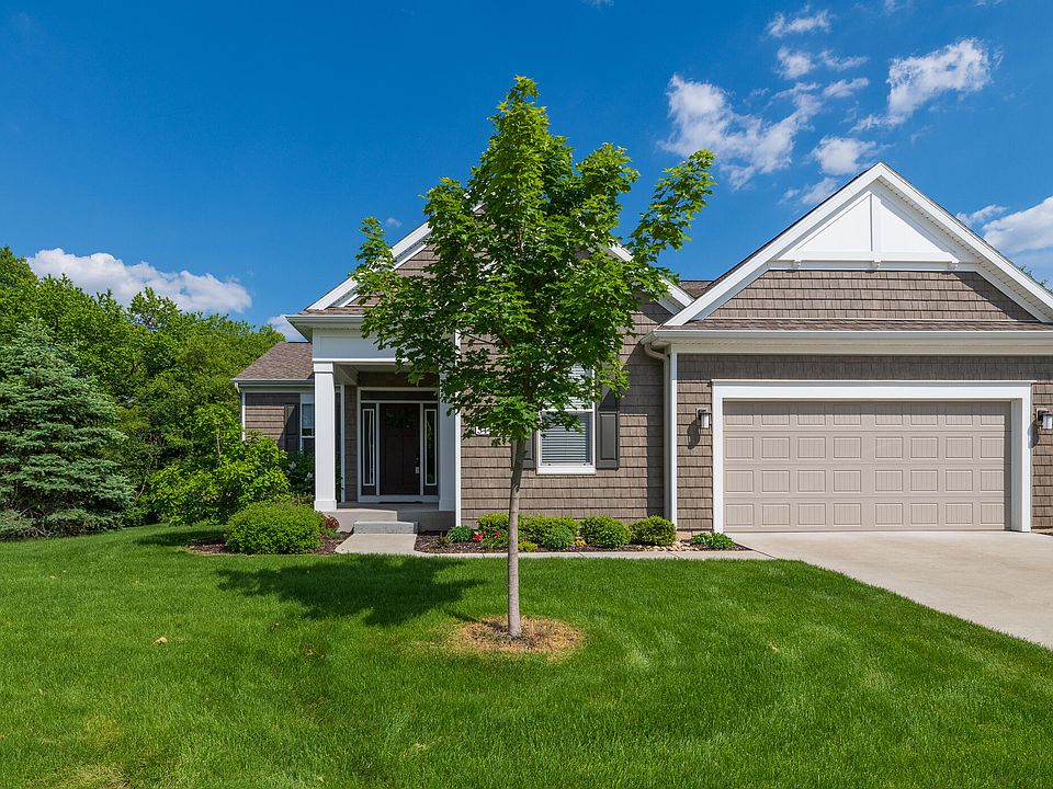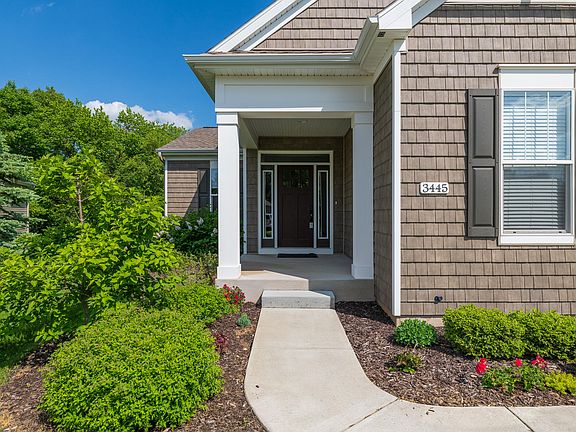 OPEN CONDO SUN. JUNE 6TH 1-3. One of the largest floor plans (Turnberry) in the neighborhood, at 2,100 main floor & 1,130 finished sf on the lower walkout level. A 5 yr, old custom-built one-owner condo home with panache; distinctive, warm, hickory floors throughout the main level, a modern kitchen w center island and all the bells and whistles. Two main floor bedrooms with two full baths. The master bath is customized with soaking tub and shower. A ''piano room'' adjacent to the living area. An expanded-width deck with gas and water for your convenience. East-facing windows with unique European window coverings let in tremendous ambient light. Two more bedrooms, a third full bath, 1,130 finished space & another 1,000 sf unfin. area on the w/o level. A new condo community. with 68 homes in this finished section of Phases 1 - 3. Includes a gorgeous clubhouse with inground pool, 40-person classroom, exercise room, and huge meeting area with kitchen. It's a pretty community with attention to maintaining large trees and greenspace. The monthly Association fee is $310 and the buy-in fee is $620, managed professionally by Gardner Management.