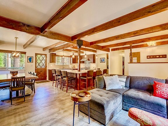 River front cabin ! Escape to this charming riverfront cabon nestled in the Christmas Valley area of South Lake Tahoe. Perched on the banks of the Upper Truckee River, this 3-bedroom, 2-bath retreat spans 1,950 square feet and sits on a generous 2.3-acre lot, just 4 minutes south of Hwy 50 off Hwy 89. With sleeping space for 8 across 2 king and 2 queen beds, it's perfect for a group getaway. The property also boasts a 2-car attached garage and a separate 1-car shop.