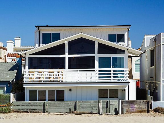 This is a 3 story contemporary ''Hamptons Style'' ocean front beach house on Hollywood Beach with stunning ocean views from all living & sleeping rooms! Remodeled kitchen with beautiful white quartz counter tops, large farm sink, stainless steel appliances and white shaker cabinetry. Great wrap around bar surrounding the kitchen. Amazing new ''hardwood style'' floor tile on the 2nd level & new carpet in the bedrooms. Spacious laundry room with storage. New electric, plumbing & forced air. New bathrooms with white marble. 2 master suites on the 3rd floor. Bring just your toys because all the contents, furniture, beds, tvs . . . all included in the sale! Doesn't get any better than this!!