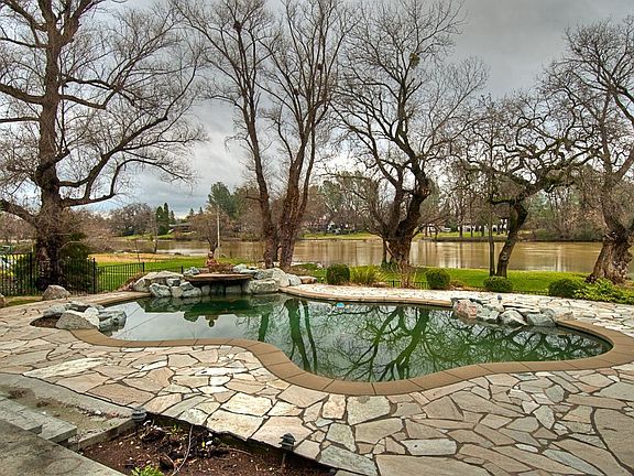 Estate Living with ever changing views of the Sacramento River. Enter to a sweeping staircase and soaring ceilings, marble accents through out. Professional kitchen features a six burner cooktop, cherry cabinets, granite slab counters, and a built-in fish tank. The Great room with its 18' marble fireplace mantle overlooks the pool, sweeping backyard and river. No detail has been missed here...