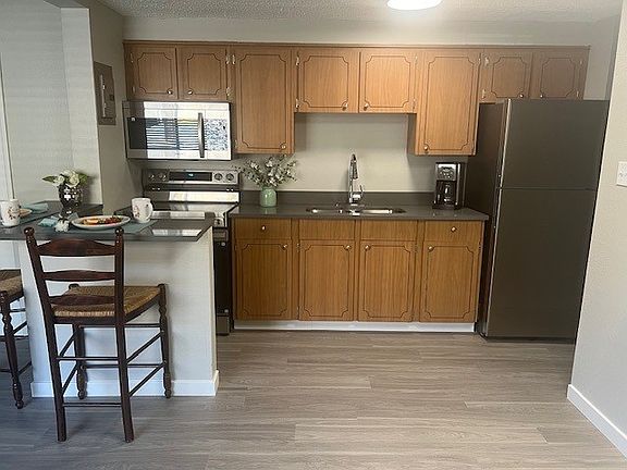 Built in microwave ovenStainless steel appliancesBathroom vanityNew ceiling fansNew vinyl plank flooring