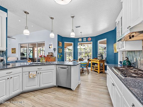 A stunning home tucked away on a quiet cul-de-sac in Windover Farms, where PEACE & PRIVACY meet timeless charm. The interior offers IMPACT WINDOWS, updated kitchen with Bosch appliances and new refrigerator, QUARTZ counter tops, GAS range & California Kitchen Designed pantry, luxury vinyl flooring in living area, epoxy garage with added 100 sq. ft. AC HOBBY ROOM. Modernized bathrooms, wall to wall sliders that open up to a remarkable view! The real MAGIC happens in the backyard! An absolute oasis with mature trees creating a natural canopy. A koi fish pond glistens in the sunlight, framed by MANGO and AVOCADO trees, picnic area, landscaped archways and plenty of relaxing seating areas to enjoy the sounds of nature! The recently painted exterior impresses with a sophisticated METAL roof, extended PAVER driveway with BONUS parking & walkways accented by warm ambient lighting. Low HOA Fees. This home is lovingly maintained & is ready for new memories to be made!
