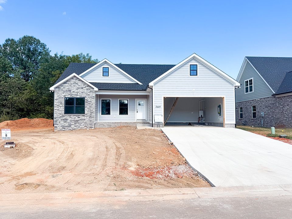 Welcome to one of South Warren's best. South Haven offers an idyllic community with generous lots, porches made for sitting, upgraded quality finishes and an upcoming neighborhood recreational area including a pool. This beautiful build from Rushing Builders puts quality first with an attention to detail. From hardie siding with stone accents on the exterior to hardwood floors, leathered granite, and enhanced kitchen design on the interior, you'll appreciate the bespoke touches on this home. Front and back covered porches create plenty of opportunities for indoor/outdoor living, and the tree lined rear lot is highly desirable. Additional interior features include split bedroom floor plan, mud room/drop zone with custom millwork, oversized laundry with extra storage details, huge walk in tiled shower with separate floating soaking tub in the primary bath, and a lovely fireplace in the living room ready for cozy evenings. Welcome home to South Haven! *Ask about builder preferred lender incentives