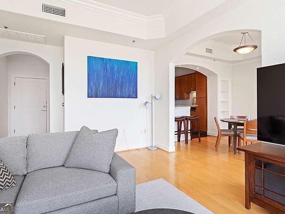Experience Luxury living in Buckhead's Finest High-rise buildings with the Stunning Western Sunset and city views from the 24th floor in the Paramount At Buckhead ! This Stunning updated 1 bed/1 bath condo is perfect for entertaining with views in every room ! The Spacious kitchen with stainless steel appliances, granite countertops, double sink, stain grade cabinets and a breakfast bar. The light, bright living room features hardwood floor, crown molding, built-in shelving and dramatic floor to ceiling windows with gorgeous views of the city with a large balcony and storage closet! This beautiful condo also features a large romantic master suite with carpets featuring a ceiling fan, crown molding along with an upgraded bathroom with a custom shower with glass doors and state of the art tiling throughout! ! The large laundry room with an Electrolux washer & dryer is included and has extra shelving for storage. This unit also had HVAC (with Nest installed) & Water Heater replaced . Custom electric blinds were installed throughout ! The HUGE custom California closet comes with a hidden safe. This unit is unique as it comes with fully renovated GARAGE on the most sought after location on B1 custom designed with industrial-grade multi layer garage floor coating and an LED light in the ceiling for extra lighting! Also included is a large storage unit on B2 that has a 4-tier storage shelving that is included with the unit. Furniture is negotiable ! Step outside of Paramount, and you're in the heart of it all. Treat yourself to a nice massage at the Waldorf Astoria next door , easy access to MARTA to go in to town or airport, enjoy the delights of award-winning restaurant such as NOBU, ARIA, LITTLE ALLEY STEAKHOUSE, MAGGIANO'S, or indulge in retail therapy at Lenox and Phipps Malls. You are in close proximity to I-75, I-85, I-400 and within 15 mins to the airport. The Paramount has a unique short cut behind the building to escape all of the busy traffic on Peachtree and directly goes to Lenox to 400!!