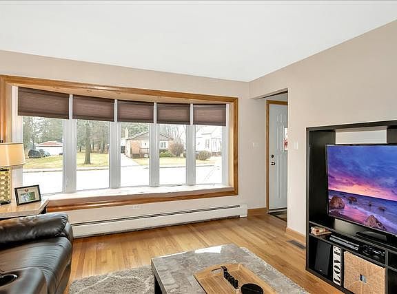 PUBLIC WELCOME - Open 1 -3 PM on Sunday March 8th*All Realtor's cards will be honored*Absolutely SENSATIONAL modern blonde brick Raised Ranch with New roof (April 2018) with transferable lifetime warranty*GLORIOUS genuine OAK floors throughout main level*Tastefully decorated throughout- So FRESH!*LOVE the gleaming Kitchen with can lights, HIGH-END stainless appliances (Brand NEW Dishwasher), GRANITE counters*1 year old Clothes Washer*Cheerful , sunny Dinette area with a view of your back yard and its COVERED PATIO*Beautifully newly REMODELED lower level Rec Room to relax in*Enjoy the BEST of BOTH: Clean, even Hot Water Baseboard Heat AND Central Air too, all throughout your new home*Spiffy 2.5 car Garage all insulted plus newer vinyl siding & ready to be dry-walled*This home is immaculate, completely updated and there is nothing left to do here. Just unpack & enjoy*WELCOME HOME!