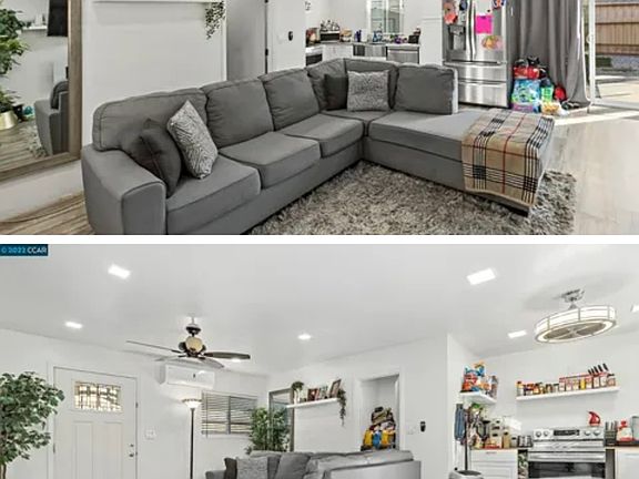 This is a ADU it's one big bedroom one side can be used for an office or a kids space. Living room, full kitchen, washer and dryer, and a A/C splitter. It has its own entrance and it's street parking. This price includes water, PGE and garbage. This places is unfurnished.