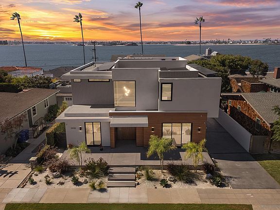 Built in 2023, this two story, four bedroom, four and a half bath home with an additional one bedroom, one bath guest house or ADU is the epitome of contemporary coastal luxury living in prestigious Crown Point. It has dynamic bay and ocean views from multiple view decks including a spectacular rooftop view deck with solar, walls of glass and impressive design features throughout. The open concept main level is perfect for entertaining with easy access to an outside deck and grassy area. The two bedrooms, two and a half baths on the main level provide a sense of privacy for the two bedrooms, two baths, family room that occupy the second level. The sumptuous master suite has two large walk-in closets, premium fixtures and finishes and a free standing tub and shower. The large family room has sliding doors that provide access to one of the view decks and serves as a second living room for the upper level. The separate guest house or ADU is close by and attached to the garage. It works perfectly as a studio, study, or office for someone working remotely. With tremendous curb appeal, sweeping views, and a design aesthetic found in considerably more expensive homes, as the new owner, you will be getting a gem unlike any other in Crown Point.