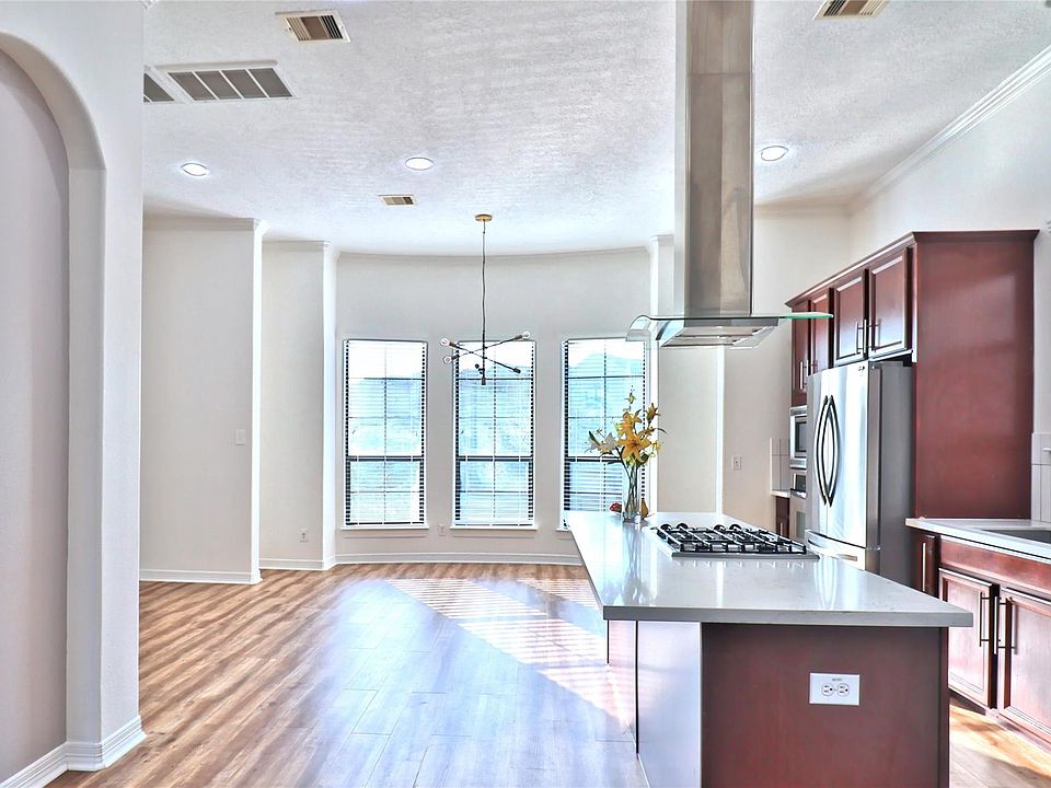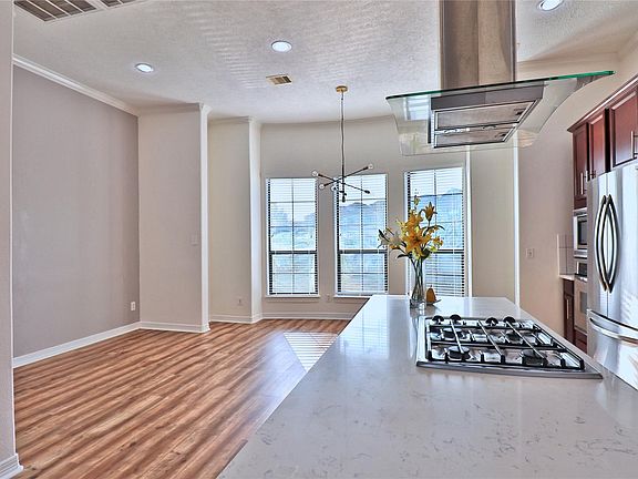 Welcome to this updated stunning home in a gated community. It features 3 beds/3.5 baths, open floor plan with tons of natural light. BEAUTIFUL and easy maintained luxury vinyl throughout the house. The living room leads out to a relaxing big balcony overlooking the green belt which is perfect for entertaining. The kitchen features Quartz countertops, SS Appliances and lots of cabinets. Enjoying spacious primary bedroom and the luxury spa-like bathroom with a Freestanding Soaking Bathtub, double sink with quartz countertops and gorgeous shower. The nice sized backyard is fully fenced good for pets and plants. No back neighbors . Washer, Dryer & Refrigerator included! Never flooded! The thoughtfully designed community provides ample guest parking lots along the green space. dog park within the community. This house is ideally located, minutes away from Texas Medical Center, NRG stadium, Rice villages, Galleria, Easy access to major highways. Landlord pays water and trash.