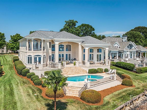 Quietly hidden in Lake Norman is one of the most prestigious neighborhoods, Governors Island. Rare opportunity to live in this sought after location. Bridge with mature trees line the way to a gated, private island, seawall, sidewalks. Unparalleled main channel lot with over 100 feet of deep water, panoramic 180 views. Meticulously maintained home, grand foyer, open floor plan for entertainment & relaxation. Soaring ceilings, curved staircase, arched windows, hardwood floors, natural lighting. Guest suite with double doors to private balcony. Owners suite with double doors to pool and spa area with beautiful views. Tremendous bath, walk in shower, dual vanities and his and her walk in closets. Exquisite kitchen area with abundant white cabinets with granite countertops. Outdoor living with kitchen area. Heated pool/spa. Multiple covered patios. Pier, 2 docks, 2 lifts. minutes to Charlotte . Low HOA. Easy access to everything Lake Norman has to offer. No sign in yard