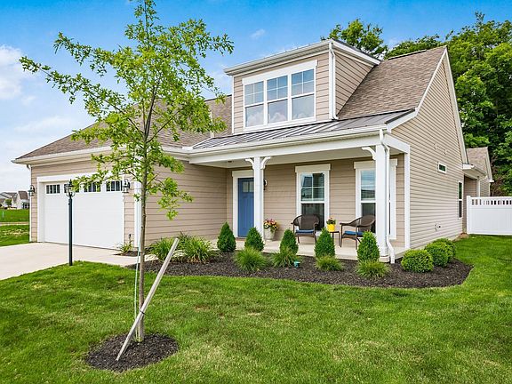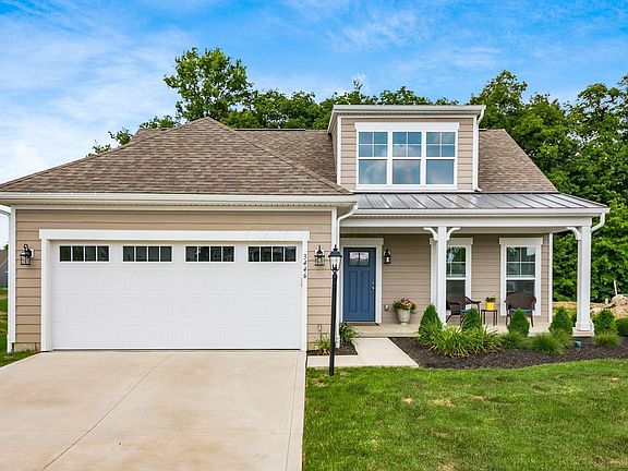 Welcome to 3446 Joberry Loop, a freestanding cottage-style ranch condominium in award-winning Woodside at Holton Run, a premier maintenance-free community honored with multiple 2022 BIA Parade of Homes awards—Best Overall, Curb Appeal, Living Area, and Floorplan. This Cambridge floorplan offers 1,873 sq ft of single-level living with two spacious bedrooms, two full baths, and a French-doored office/flex room—perfect for hobbies or a potential third bedroom. The main common area features an open-concept layout, seamlessly connecting the great room, dining area, and kitchen—ideal for relaxed living and entertaining. The great room features soaring cathedral ceilings, custom lighting, and a gas fireplace with shiplap face and a chiseled oak mantle for a cozy ambiance. The chef's kitchen is sure to impress with quartz countertops, upgraded stainless steel appliances, gas range with direct-vent hood, ceiling-height tile backsplash, ample counter space, breakfast bar, and eating area. The oversized primary suite includes a tray ceiling, spa-like en-suite with private water closet, and a massive walk-in closet. A generous guest bedroom is conveniently near a full bath, creating a private retreat for visitors. Luxury vinyl plank flooring flows throughout the entire home for seamless continuity. Enjoy a two-car attached garage with extra storage and a premium wooded lot for privacy. Relax or entertain in the covered side porch, enclosed with a vinyl privacy fence. HOA covers lawn care, snow removal, common area maintenance, trash, and water for true low-maintenance living. Located just minutes from historic downtown Grove City, with easy access to dining, shopping, events, and major highways—I-71, I-270, US-62, and SR-665. With over $100K in builder upgrades, this home blends elegant design, carefree living, and community in one of Central Ohio's most desirable neighborhoods. Don't miss this opportunity—schedule your tour today! (See upgrade list in documents tab.)
