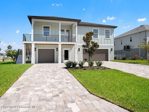 Experience the perfect blend of strength, sophistication, and waterfront living in this brand-new Hernando Beach residence. Built with hurricane-ready engineering, including deep pilings and engineered breakaway walls, this home ensures long-term security while embracing modern coastal design. Inside, dramatic grand 12 foot tray ceilings set the tone for open, airy living. Expansive windows flood the home with natural light and frame sweeping waterfront views. The culinary-grade kitchen is both functional and refined, featuring custom full-height soft-close cabinetry, quartz slab countertops, a statement island with designer pendant lighting, and integrated finishes that elevate every detail. Crafted for resilience, comfort, and efficiency, the home includes impact-rated Pella windows and doors, a GAF Lifetime shingle roof with secondary water barrier, Zip-Sheathing waterproofing, concrete block first level with engineered blow-out walls, and Wi-Fi enabled impact-rated garage doors. A Comfortmaker three-ton 15 SEER HVAC system with programmable thermostat provides climate efficiency, while prewiring for Ethernet, smart shades, security, and surveillance ensures modern convenience. A dedicated elevator shaft is in place, allowing for effortless installation of a private elevator when desired. The oversized garage offers capacity for up to six vehicles, providing unmatched storage for cars, boats, or recreational equipment. Outdoors, the property is finished with a seawall, paver driveway, professional landscaping with St. Augustine sod, and a four-zone irrigation system. Step outside to enjoy direct canal access to the Gulf of Mexico, ideal for boating, fishing, and the Florida lifestyle. Hernando Beach is recognized as the most affordable way to live on waterfront with Gulf access in the Tampa Bay area, offering buyers the rare opportunity to enjoy a luxury coastal lifestyle at a fraction of the cost of other waterfront communities. Just minutes away, the Hernando Beach Marina provides high and dry storage, wet slips, a full-service boat yard, sales, and maintenance. The neighborhood also offers access to the Hernando Beach Club, a private waterfront social club for gatherings, dining, and entertainment on the water. Located in Hernando Beach South, the home also benefits from HOA oversight that helps maintain neighborhood standards and long-term property values. With a one-year builder warranty and transferable manufacturer warranties included, this residence is as secure as it is stylish. This is more than a home. It is a statement of lifestyle. Beyond your doorstep, Hernando Beach offers countless ways to relax and explore. Spend weekends scalloping, fishing, or island hopping in the Gulf. Pine Island Beach is minutes away for sandy shores and picture-perfect sunsets, while Weeki Wachee Springs invites you to kayak crystal-clear waters and spot manatees up close. Locals enjoy fresh seafood restaurants, tiki bars with live music, and waterfront dining where you can arrive by boat. Adventure seekers can bike through the Weeki Wachee Preserve, launch paddleboards from hidden canals, or join the lively boating scene that defines the area. From neighborhood festivals to coastal sunsets, Hernando Beach is where everyday living feels like a getaway. Secure your place in one of Florida's most unique waterfront communities today.