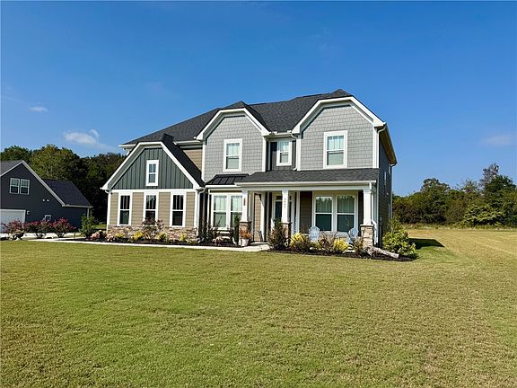 Welcome to this stunning, semi-custom home - with over $137,750 in builder upgrades - situated on nearly a full acre (0.97) lot in Chastain Ridge. The thoughtfully designed lot plan provides space to garden, install a pool, or create a workshop built to suit without city or HOA restrictions. No known rental restrictions! Just 15 minutes from downtown Clemson, the location offers a peaceful setting with convenient access to award-winning public schools, Lakes Hartwell and Keowee, Clemson University, and miles of hiking trails. Built in 2024, the 3,566 square-foot floor plan features abundant entertaining space, all the comforts of modern living, and luxury upgrades throughout, plus an additional 415 square feet of garage space. The main floor includes a spacious foyer open to the formal dining room, boasting a coffered ceiling and designer lighting. The study, accessed through glass French doors, provides a quiet place to work or play. Next comes the gourmet kitchen where you’ll find quartz countertops, premium lighting, a gas cooktop, double ovens, extended cabinetry and a centerpiece island for food prep or gathering for a meal. The open floorplan ensures everyone is included in the moment. Just off the eat-in kitchen are the full breakfast area, chef’s nook, and a generous great room. Warm by the gas-log fireplace overlooking the backyard. A bedroom and attached bath on the first floor are perfect as a guest suite or the main-level primary bedroom. Upstairs you’ll find a second primary suite featuring a roomy walk-in closet and bathroom with separate vanities, tiled shower and a soaking tub. Also on this level are three additional bedrooms (all with walk-in closets), the laundry room and a full bathroom. Completing the second level is the home’s bright, open loft, which serves as a second den, office or flex space. A large attic and 2-car garage provide additional storage space in the home. The Smart Home Technology Package conveys and includes video doorbell, keyless entry and touch screen hub. The covered front porch and sizable backyard provide ample space for hosting friends and enjoying the outdoors. Wonderful opportunity for elevated living in a quiet, convenient setting! Schedule your personalized showing today. Sellers are moving due to unexpected job relocation. All offers welcome!