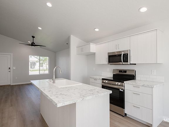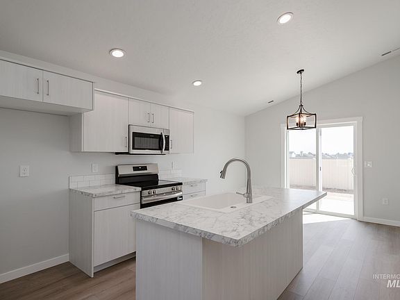 This brand new home located in vibrant Meridian, Idaho welcomes you with open arms. The Stella 1207 is adorable and bursting with charm! This thoughtful floor plan flows seamlessly through the home to deliver a cozy living experience. Three bedrooms, all situated on one side of the home, are designed to provide a secluded get-away to everyone. The centrally located living room, kitchen, and dining room are the heart of the home for lounging or entertaining. The kitchen is well-equipped with a spacious island, modern appliances, and plenty of counter space for all your culinary needs. The primary suite provides an en suite bathroom and large closet. Enjoy easy access to the back patio from the dining room and make the most of the pleasant Idaho weather, perfect for outdoor gatherings or quiet relaxation. With its efficient design and inviting atmosphere, the Stella is the ideal place to call home. Photos are of the actual home!