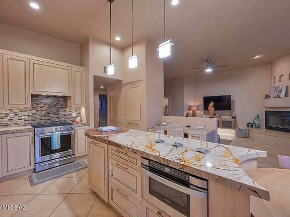 Stunning property! The home was priorly remodeled by renowned Interior Designer Lori Carroll & it shows. The kitchen is a true gourmet chef's dream, featuring stunning quartzite countertops w/ intricate designs. Premium cabinetry offers ample storage & a seamlessly paneled refrigerator completes this show-stopping space. In the primary bathroom you'll feel as if you've entered a luxurious hotel suite. The expansive walk-in shower, featuring a built-in bench & a striking wall of glass, adds an extra touch of sophistication. The guest bath is equally designed w/ elegance in mind. Step outside to an impressive backyard, filled with desert plants that bloom beautifully & shaded by mature trees. High-end Daikin HVAC installed. Seller will accept, or counter offers between $499,995 to $519,995