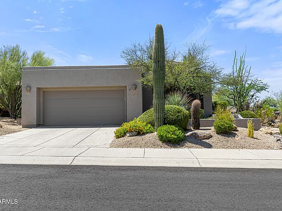 Step inside this beautifully upgraded 2 bed home and experience true elegance w/ soaring light-filled spaces, rich finishes, & breathtaking views of Black Mountain. The new designer kitchen is a showpiece with sleek black cabinetry, a granite waterfall island, a dramatic backsplash, & premium Café appliances. The spa-inspired owner's suite offers a luxurious double-headed glass shower & a relaxing retreat. Outside, enjoy total privacy on a lush corner lot with flagstone & low-maintenance landscaping. Every major upgrade has been completed including HVAC, flooring, kitchen, & sunscreens. Located within guard-gated Terravita, just steps from the clubhouse, golf course, tennis, pickleball, & scenic walking trails. This home offers community, luxury & gated views. Owner may carry.