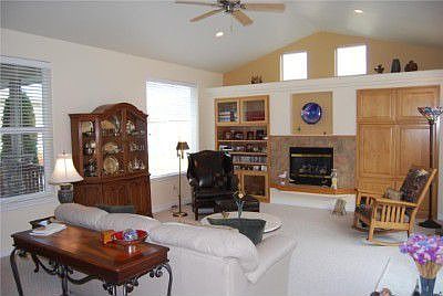 Beautiful one level home on large lot in great neighborhood. Very close to Barkley Village and walking trails. Front porch has view of Bellingham and Bay. Yard is completely fenced and nicely landscaped. The home is very attractive inside and out. River rock detailing on exterior and pleasant colors throughout the home. Has recently been painted inside to compliment the modern, light feel of the home. A great layout with three bedrooms plus a den or 4th bedroom. Custom, remote blinds.