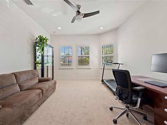Located in the luxurious Riverstone community in the heart of North Naples, this gorgeous Drake model is situated on a beautiful lake with breathtaking sunset views. Featuring 4 bedrooms and 4 full baths with den. Professionally designed master bedroom, Hunter Douglas window treatments, newly replaced appliances, a split 3 car garage, upgraded cabinets throughout, crown molding and upgraded finishes throughout, counter to ceiling mirrors, and custom walk in closet in master, Riverstone is a prime community with a state of the art clubhouse with fitness center, indoor and outdoor basketball courts, resort style pool with cabana's and lap pool. Close to Naples beaches, entertainment and shopping.
