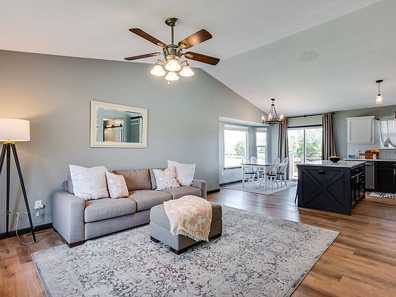 Welcome to 3448 N Lake Ridge Ct! This beautifully maintained 4-bedroom, 3-bath ranch in the desirable Tyler’s Landing neighborhood offers a blend of modern updates and comfortable living spaces. Situated on a quiet cul-de-sac in the Maize School District, this home is move-in ready and full of features buyers will love. The main level features an open floor plan with vaulted ceilings, new LVP flooring, and a remodeled kitchen with quartz countertops and an updated pantry/laundry combo. The primary suite offers a private bath, and the remodeled hall bath serves the additional main-floor bedrooms. The fully finished view-out basement includes a spacious rec room with wet bar, a fourth bedroom, full bath, and bonus space for office or playroom. Enjoy outdoor living on the newly poured concrete patio (2024) within a fenced backyard. The exterior has been refreshed with new siding and paint (2021), and a new HVAC system was installed in 2021. Neighborhood amenities include a pool, playground, walking paths, and lake access. Conveniently located in Maize Schools, close to dining, shopping, and entertainment.