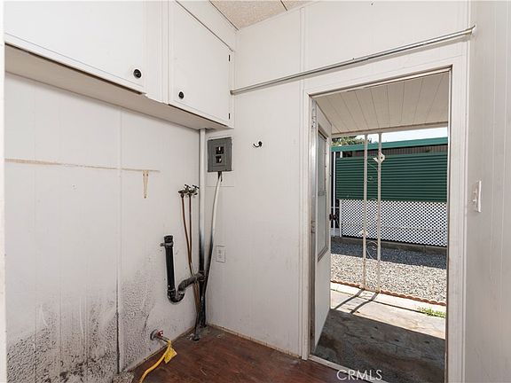 View this corner lot property that encompasses an expansive concrete deck with patio cover and vinyl railing on one side and an attached carport on the other large enough for 2 cars. As you enter the home you are greeted with an open floor concept dining and living space with built in wood cabinetry. The interior of the home has engineered wood plank flooring, new dual pane windows throughout, modern kitchen with shaker style cabinets and granite countertops. This home also boasts 2 bedrooms and 2 bathrooms in addition to an indoor laundry room which. This property also has a storage shed in the back of the property for additional storage.