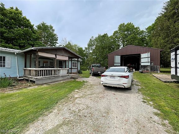 3 bedrooms, 2 full baths 1986 double wide on 5.03 private acres in Noble County, Ohio. Well water, 2 cisterns, septic system. The outdoor wood furnace heats the home and propane could be installed as it does have duct work per seller. Metal roof 2021. Window AC units, new flooring and subfloor 2017, new back porch 2020 front porch 2017, garage 2019, sliding rear patio door 2023, fresh paint throughout April 2023. Mobile hotspot through Verizon and an antenna that picks up 18 because of the elevation!