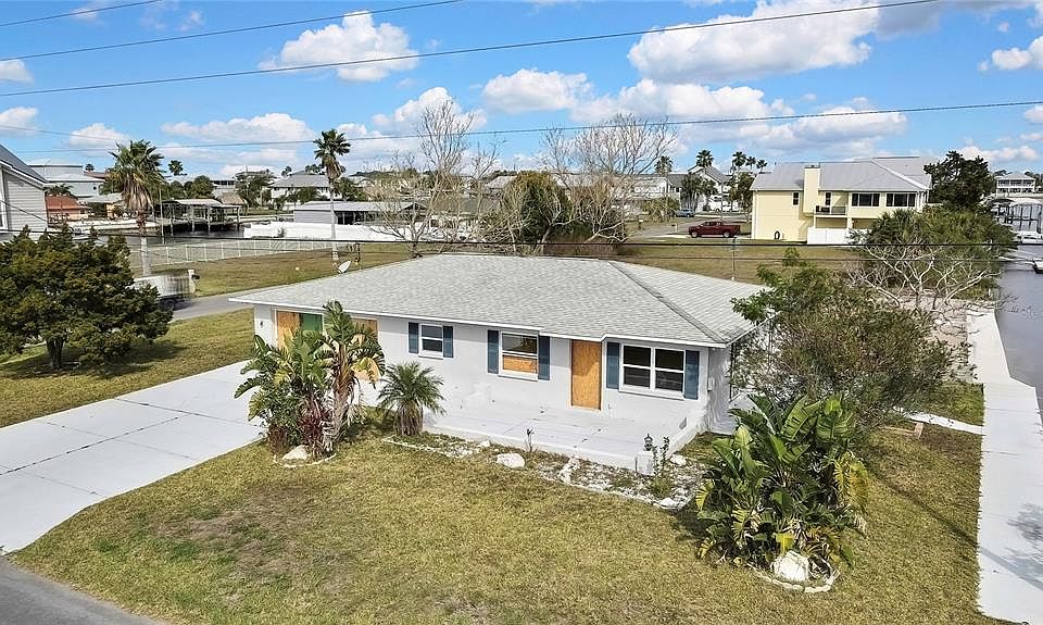 Investor Opportunity. Home is a Fixer Upper due to Hurricane Flood and Wind Damage. Sold As Is. Waterfront, Southern-facing block home is a must-see for investors! Offering Direct Gulf Access, no bridges or boat lift. Enjoy the stunning views of the marsh across the street, waterfront canal, and spectacular sunsets, this 2-bedroom, 2-bath, 2 car garage property offers. Completely gutted following Hurricane Milton, and it's being sold in as-is condition. With 60 feet of seawall and a floating dock, this home is perfect for boating enthusiasts. There are no HOA fees, no CDD and no short-term rental restrictions currently in the county, providing you with flexibility and opportunities for income with long term, short term or Air BnB rental. There are Beaches and Parks a short drive away. Local in community are restaurants, marinas, and public boat ramps. Easy commute to Tampa Bay and Orlando areas. Don't miss your chance to create something special—schedule your showing today! * Buyers should conduct their own inspections, and due diligence they deem necessary, including and not limited to county regulations*