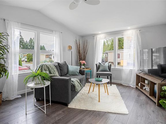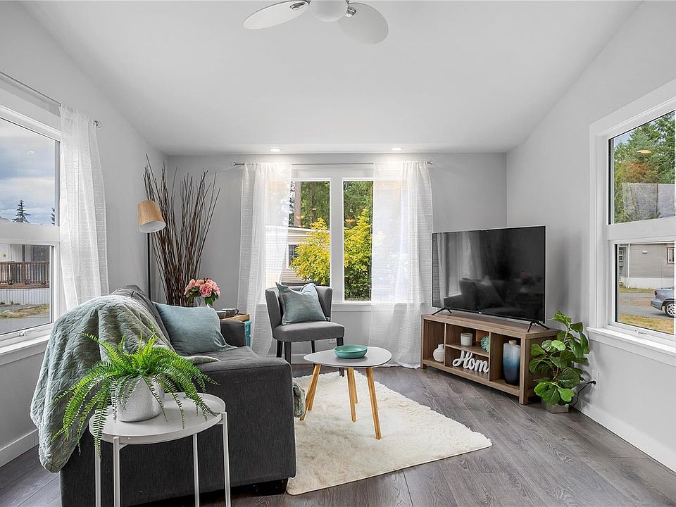 This charming 2-bedroom, 1-bath home in the Seabird Community feels more like a cozy cottage than a manufactured home. Originally built in 1971, it underwent a major renovation in 2022, including drywall, updated bathroom, flooring, and a full interior refresh. Recent system updates bring peace of mind with a new roof (2025), heat pump (2022), hot water heater (2022), and a brand new washer (2025). The vaulted-ceiling living room enhances the sense of space and light, while the fenced easy-care yard and mature trees add outdoor appeal. Located in a quiet, all-ages, pet-friendly park between Nanaimo and Ladysmith, Seabird offers affordable living in a welcoming community with community water and septic services. Close to schools, shopping, airport, and recreation, this home combines comfort, charm, and excellent value —perfect for first-time buyers, downsizers, or anyone seeking a cozy Island retreat.