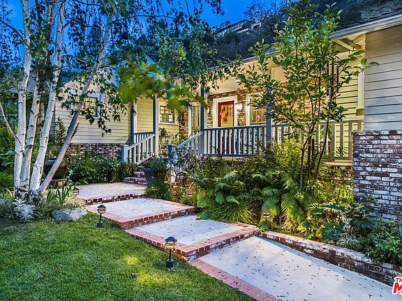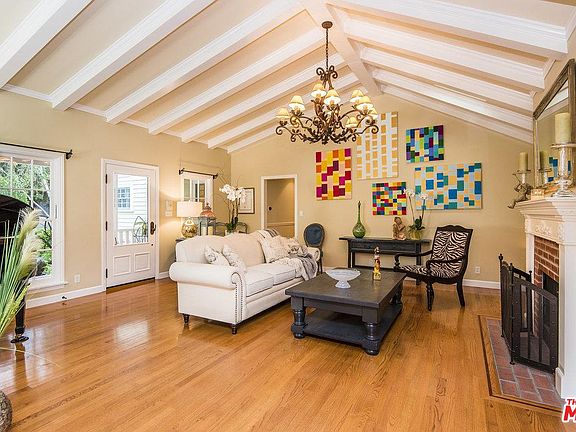 Flawlessly maintained, this traditional Longridge Estate offers a fully security gated & custom covered front porch and front entrance taking you into a flowing floor plan leading to the spacious grassy back garden. The entry is complimented by finished hardwood floors, high vaulted ceilings, chandelier, skylights, & a mantled brick wood-burning fireplace that sets the tone throughout the spacious one story living space . The adjacent family room/chef's kitchen features wainscoting; center island including a chef's sink with Brazilian granite Ubatuba countertops, all-stainless-steel appliances, 6 burner Viking range/oven, breakfast bar & top of the line linen cabinetry. 3 bedrooms down the hall includes a master suite with two master closets & an ensuite bathroom complete with premium finishes, handmade tile, marble & stone, a stand-alone tub & separate walk-in shower. The private back garden offers multiple seating areas, a built-in BBQ, a powder room and a gated side path.