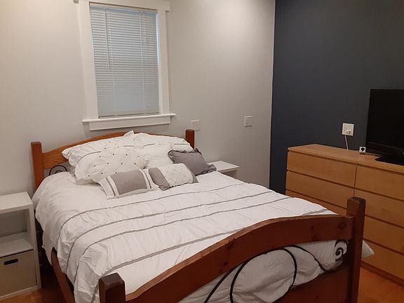 950 square feet , large master bedroom with 2 smaller bedrooms. Large dining room and lounge area. Nice size kitchen. Sunny backyard. Building borders neighborhood park. Easy Street parking. Quiet neighborhood street. Completely updated/rehabbed. Washer and dryer in building.