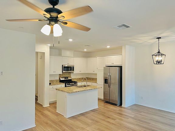 This newly built condo offers 3 Bedrooms all upstairs, 2.5 Bath, owned solar panels, attached 2 car garage in the desirable Sevilla community. The inside has high ceilings, recessed lights, plank flooring on the main level and carpet upstairs. The kitchen features granite counter tops, a center island, white cabinets with lots of storage space, and stainless steel appliances. The kitchen is open to living room and dining room. Ceiling fans in all bedrooms, Master bedroom comes with walk in closet. The home has a private enclosed front porch area. Tenants will have access to swimming pool, spa, tennis courts, basketball court and playground. Washer, dryer and refrigerator come with the home but are not warrantied by the owner. This condo is ready for move in! Give us a call to schedule a viewing!