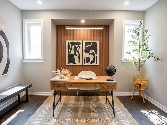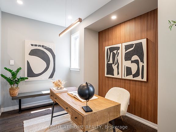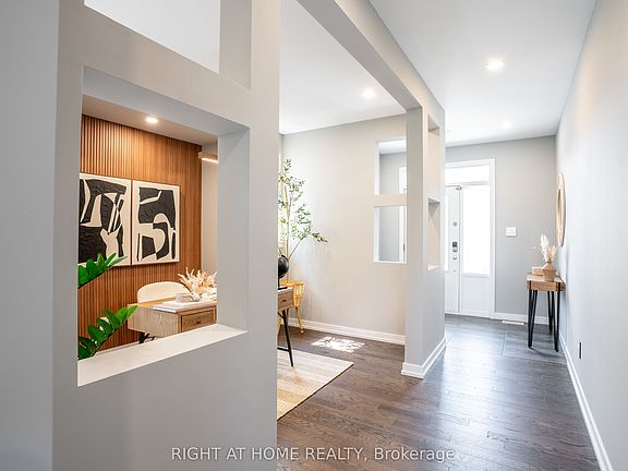 WATERFRONT! Nestled on a premium lot within the Blackstone community and adjacent to ameneties of all kind, this impeccably maintained 4-bedroom, 3.5-bathroom executive residence offers breathtaking views of a pond and mature trees from virtually all floors/rooms. A true rarity, the home features high ceilings on both main and first floors. The main level features a stylish and versatile denperfect for a home office or a formal dining room - followed by an open-concept living space flooded with natural light thanks to oversized window wall with customized Hunter Douglas electric blinds. The heart of the home is the chef-inspired kitchen, with a top tier Wolf stove and massive quartz island, walk-in pantry and spacious convection oven. Perfect for hosting intimate dinners or lavish gatherings beside stunning waterfront views. Upstairs, the rich hardfwood floor continues with a primary suite and retreat featuring a spa-like 5-piece ensuite with double vanities, a soaker tub, and a glass-enclosed shower. Three additional spacious bedrooms offer flexibility for family, guests, or additional workspace, with the fourth bedroom exceptionally bright and ideal as a secondary lounge or media room. The recently renovated and oversized lower level offers exceptional living space with a full bathroom, making it perfect for a home gym, recreation area, or guest suite. Step outside to your own backyard oasis fully fenced and beautifully appointed with a built-in Napoleon BBQ and a generous outdoor dining area, including a Wellis five person hot tub where you can entertain or unwind with the peaceful pond as your backdrop. This is luxury living yet close to several school and convenienceDon't miss this rare chance to own this waterfront gem!