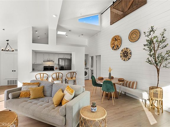 Welcome to your charming new home conveniently located in the heart of Costa Mesa. This beautifully renovated condo offers 1,008 square feet of luxurious living space. Step inside to an open concept living and dining area with vaulted ceilings and abundant natural light from brand new windows. The new laminate flooring flows throughout, creating a warm inviting atmosphere. The kitchen and living area are perfect for entertaining, with access to a charming deck—ideal for a relaxing nightcap. The primary ensuite is a sanctuary with new mirrored closet doors, a luxuriously renovated bathroom, oversized walk-in shower, double vanity, and quartz countertops. This unit also features a second full bathroom (a rare find!) with a custom vanity and tub. Enjoy modern conveniences like new central AC, brand new water heater, subterranean parking garage, and an in-unit washer/dryer. Centrally located, this gem offers easy access to all Costa Mesa has to offer. Experience elegance and comfort in this stunning residence.