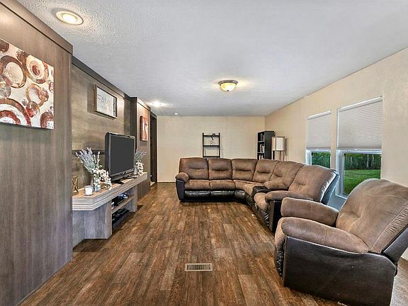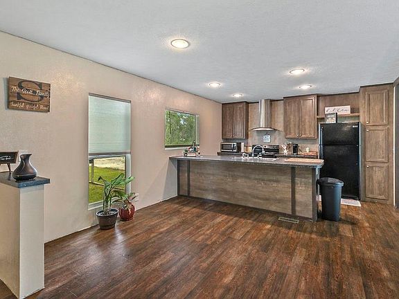Don't miss this 2016 Breeze II, 28x76 - 4 bedroom/2 bath home seated on 2.5 acres in the country yet so near city conveniences. Small pond in the rear of the property and plenty of room to grow! Fenced in front yard with shaded trees! Open and split floor plan with tons of extras, built in mantle in living room, huge great room that could be a formal living room, separate breakfast/dining area, modern sliding barn doors hide the laundry room as well as, the large pantry with write on chalkboard, recessed lighting throughout, bedrooms have walk in closets, Master has both a stand up shower and garden tub! All measurements are more/less. Don't miss your chance to see this property! Won't last long!